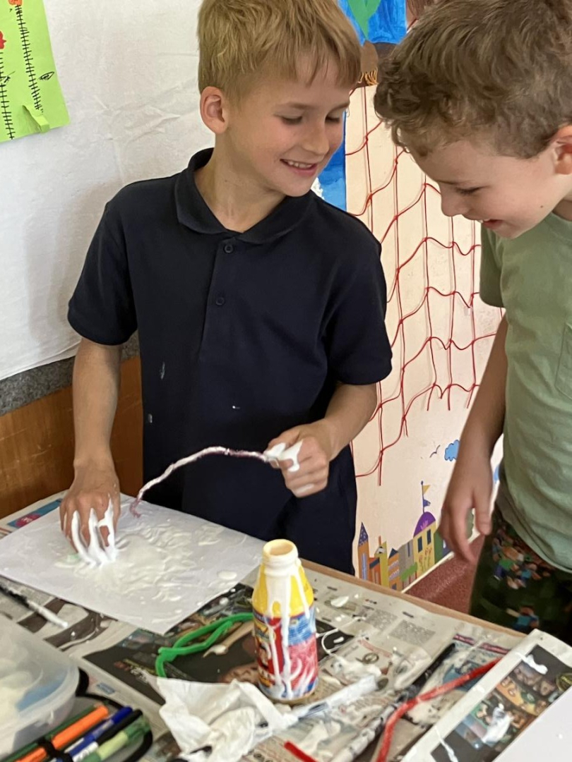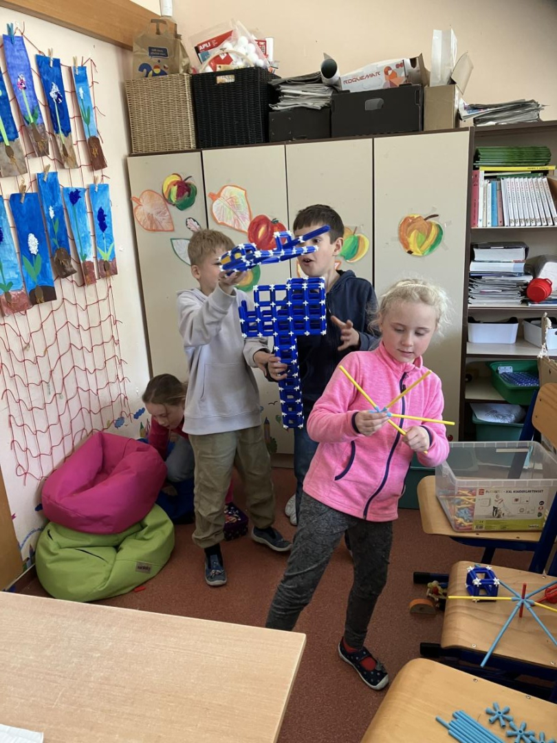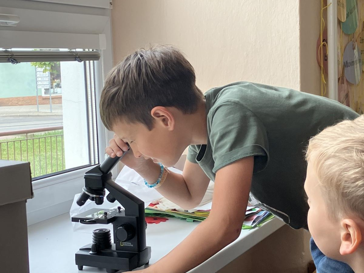 Pod mikroskopem jsme měli pavouka, plastelínu, plíseň, květy i vlasy. Pozorování předmětů pod mikroskopem děti vždy zaujme. I přes chladnější květnové dny se venku děti věnovaly různým sportovním aktivitám. Fotbal, vybíjená a různé jiné formy pohybových her venku i ve třídách nám vyplnily volný odpolední čas.