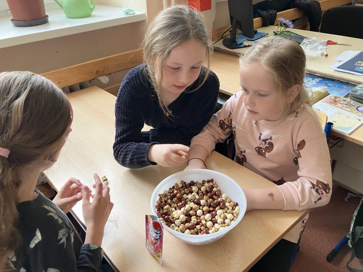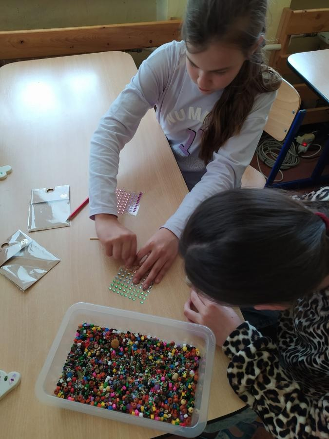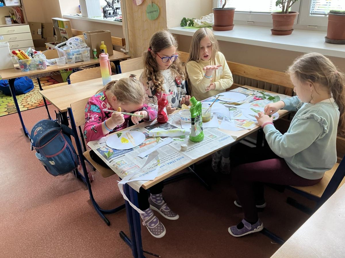 V květnu se samozřejmě věnuje velká pozornost svátku maminek. Dětem v družině se podařilo pro své maminky napéct srdíčka z lineckého těsta, navléknout náramky z barevných dřevěných korálků nebo vyrobit srdíčka ze samotvrdnoucí hmoty a ozdobit je korálky. Svými výrobky udělaly děti maminkám určitě radost.