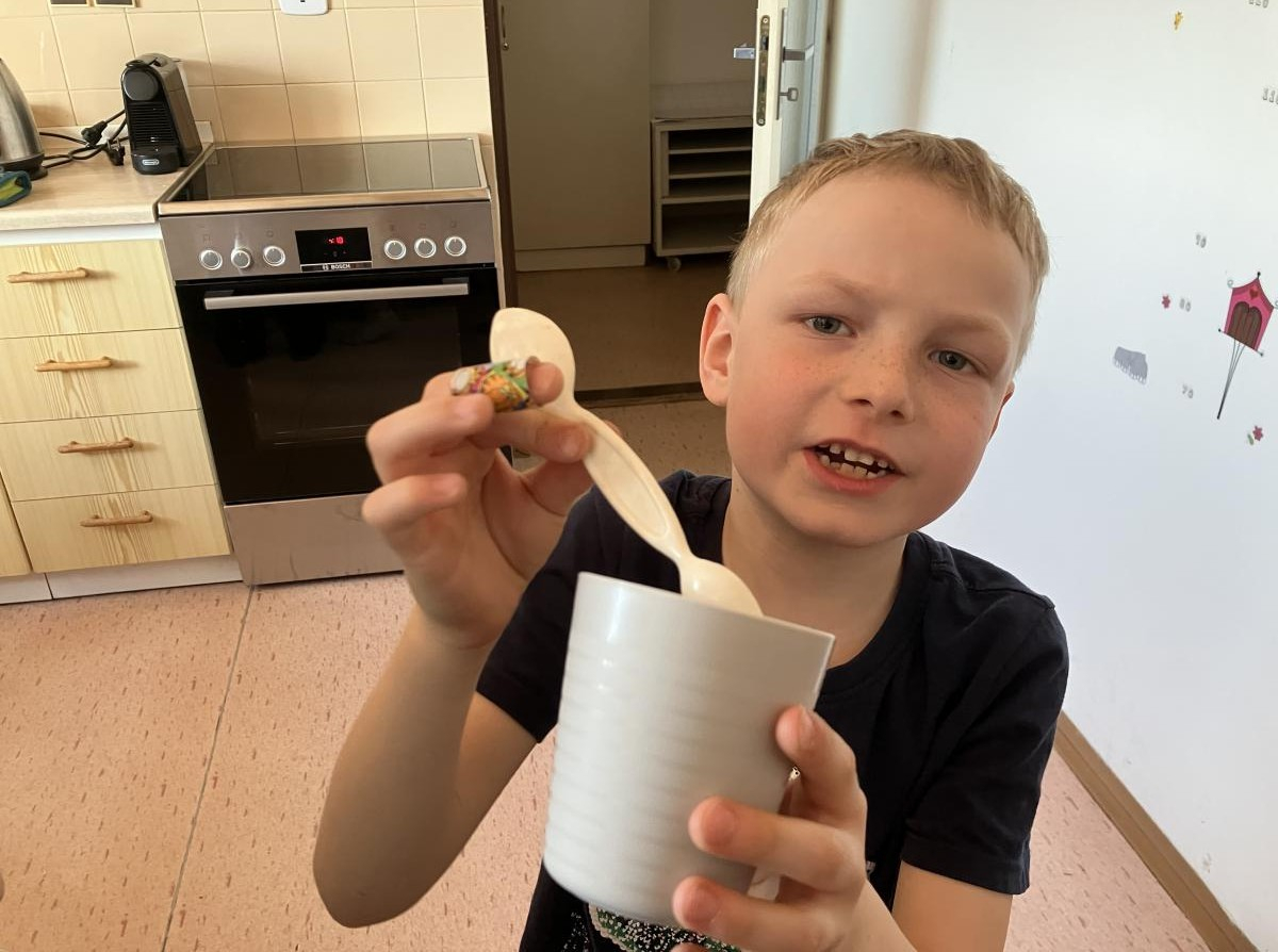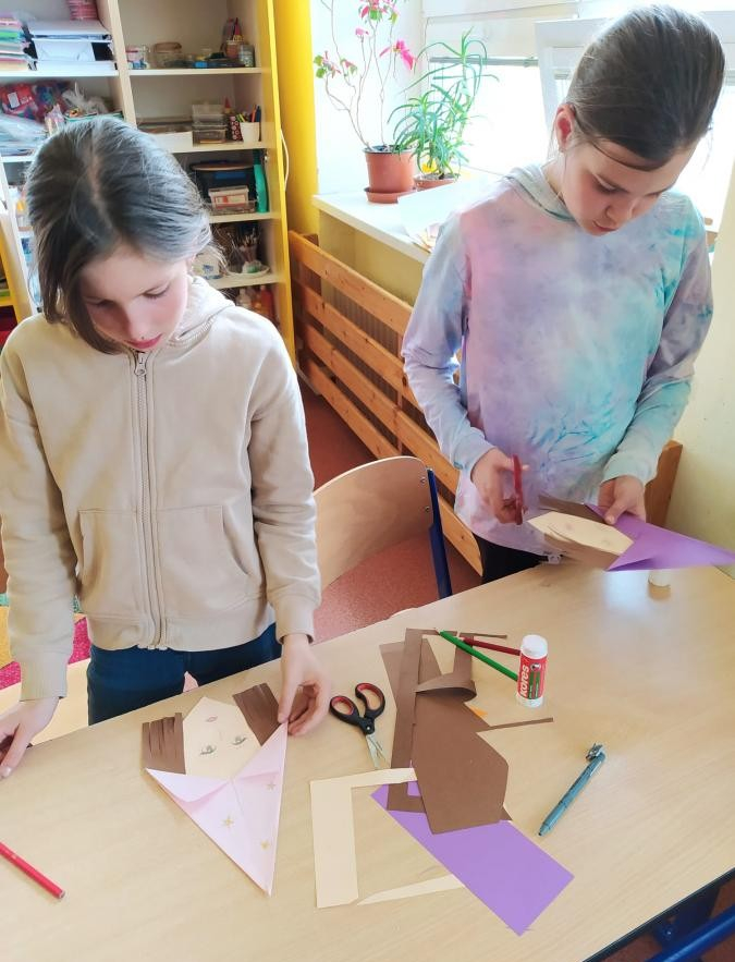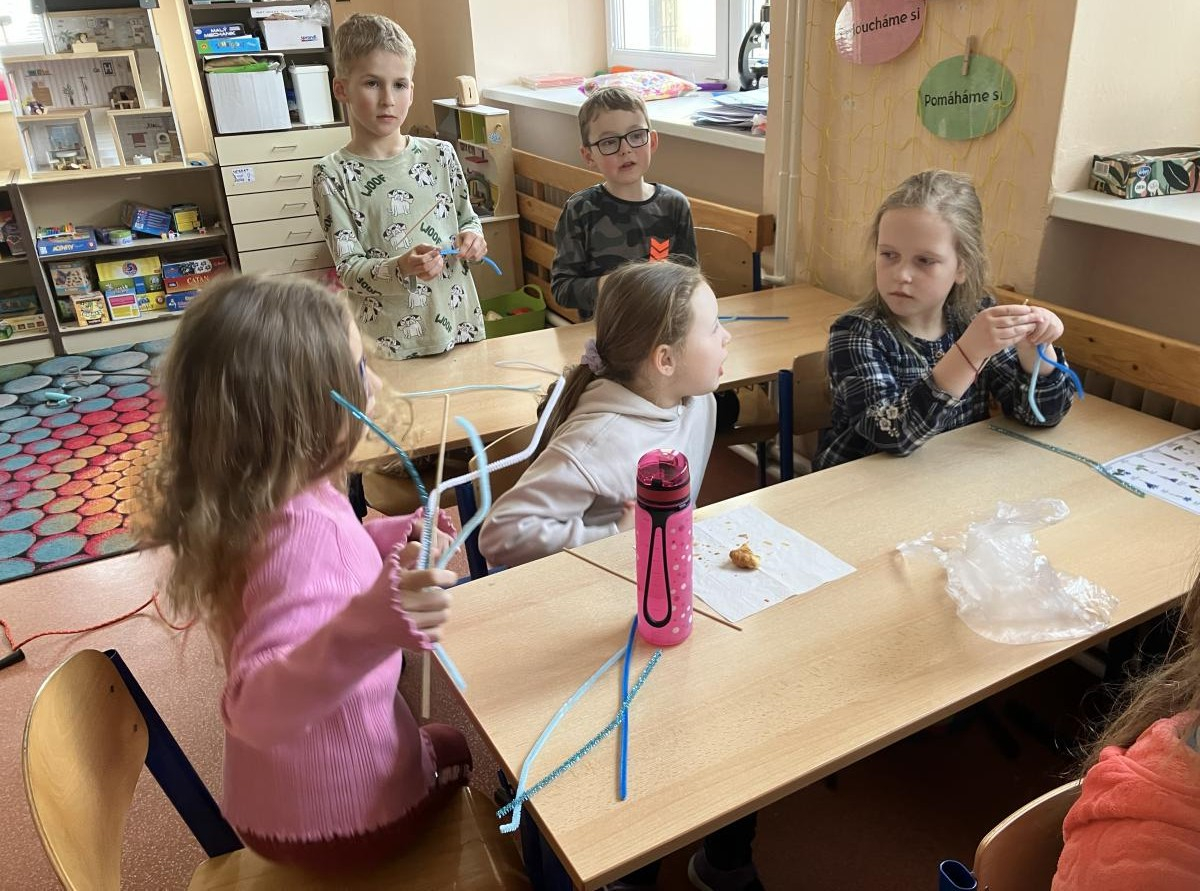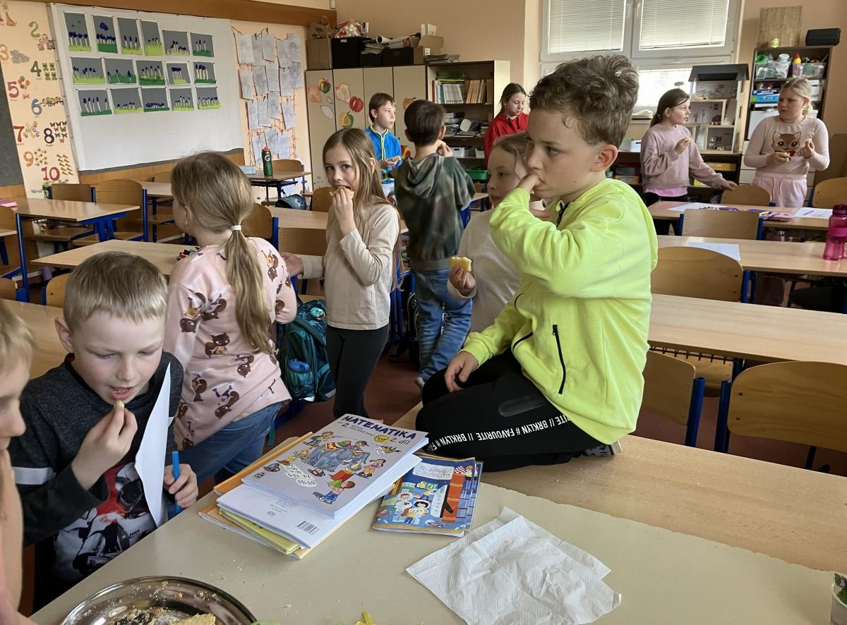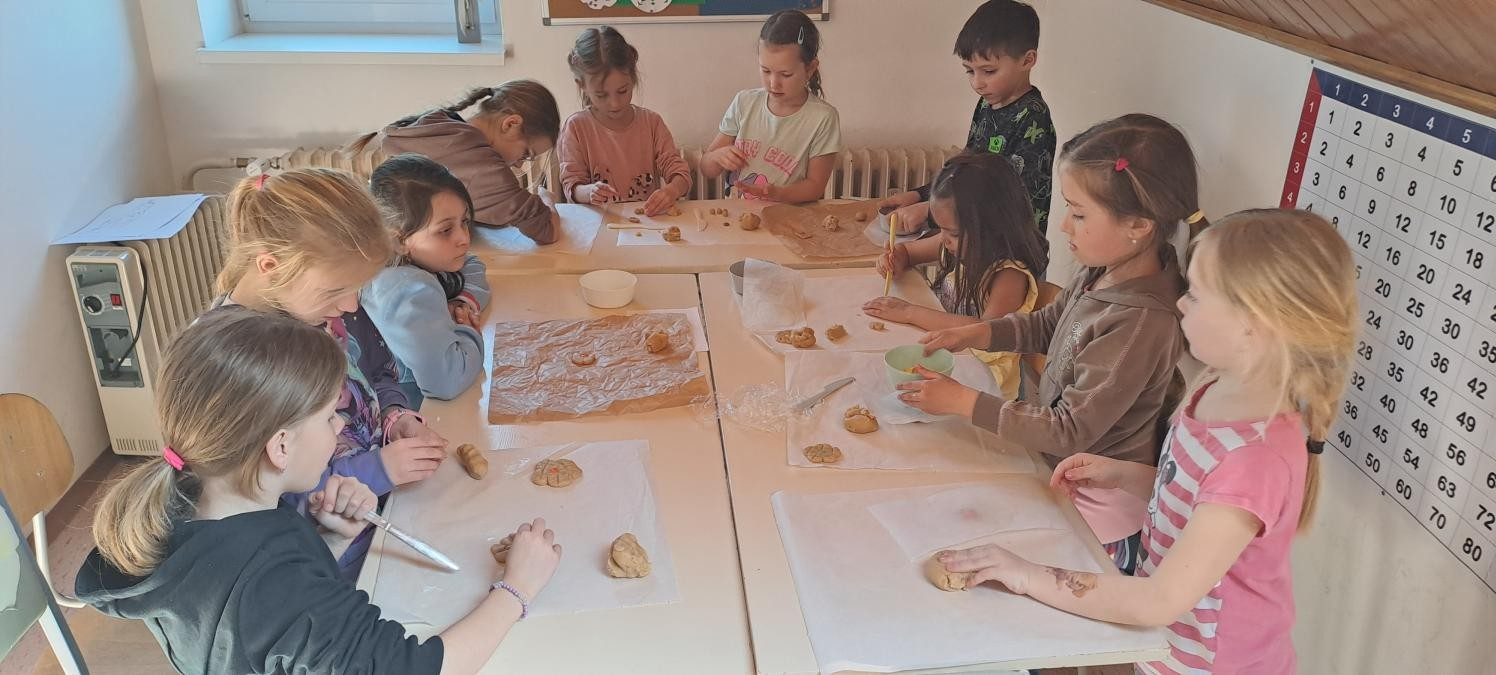 V době přicházejících velikonočních svátků jsme si s dětmi povídali o významu těchto dnů pro křesťanský svět. Věnovali jsem se také tradicím a zvykům. Děti se postupně seznámily s významem barev pro každý den velikonočního týdne. A prvňáčci zdobili kraslice na velikonoční strom u kapličky. Všichni jsme vyráběli přáníčka a došlo i na pečení beránka. Příprava trvala mnohem déle, než ochutnávka. Příště to bude chtít beránky dva.