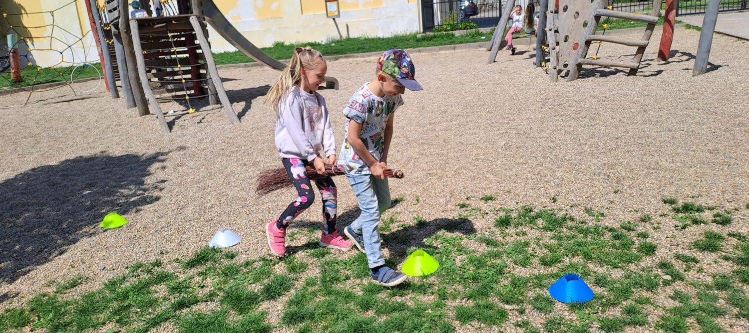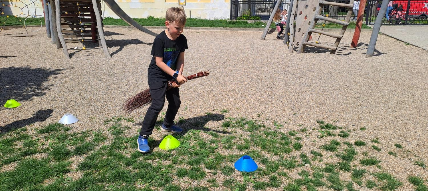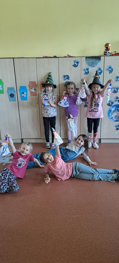 Na závěr měsíce se všichni také velmi těší, protože nastává den čarodějnic. A to je pro děti zase příležitost k zábavě. Každý si vyrobil svoji papírovou čarodějnici či ježibabu, vařily se čarodějné lektvary z různých ingrediencí a děti si u toho užily spoustu legrace. Jejich čarovné „nápoje“ byly opravdu kouzelné. Těm nejmenším paní vychovatelka připravila na školním dvoře i možnost získat Čarodějnické vysvědčení. Jen museli splnit čtyři úkoly: proletět se na koštěti, připravit zajímavý lektvar a říci k čemu slouží. Dále provést kouzlo a také vyhledat a přinést nějakou „havěť“. Všichni to zvládli a obdrželi krásné ohořelé vysvědčení.