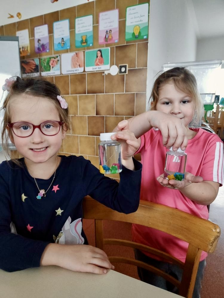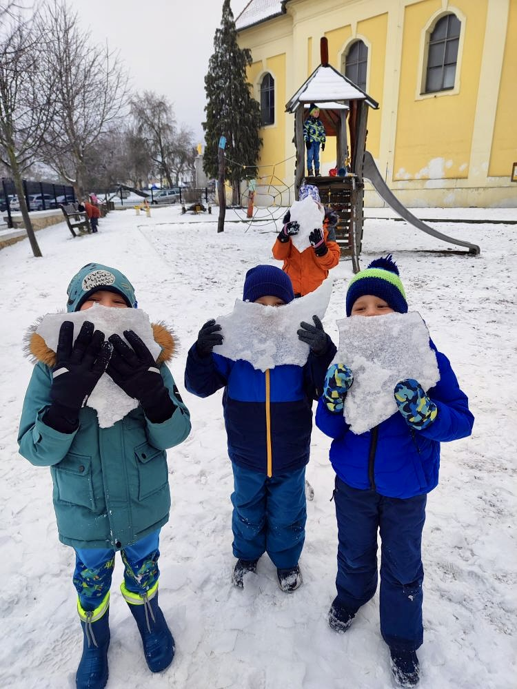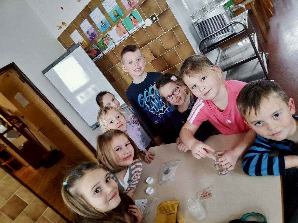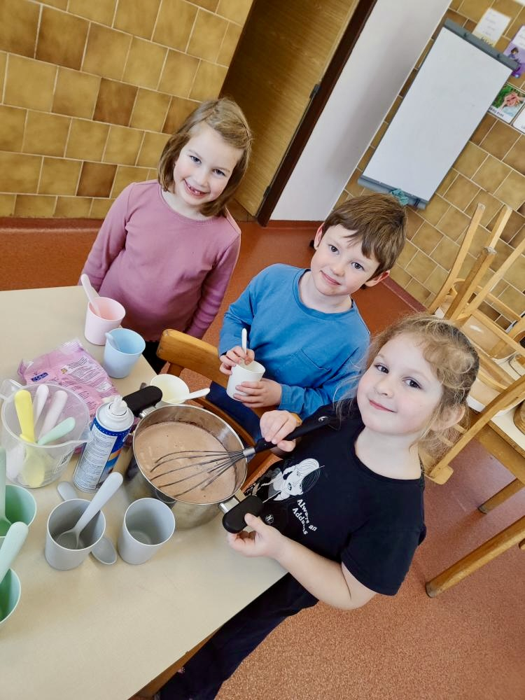 Po sněhových hrátkách jsme si společně uvařili horké kakao se šlehačkou a marshmallounky, které všechny zahřálo. Nechyběly ani zábavné hry, například „Přilep nos sněhulákovi“, a pokus „Moje chemická zahrádka“, při kterém se prvňáčci seznámili se základy jednoduchého experimentování.