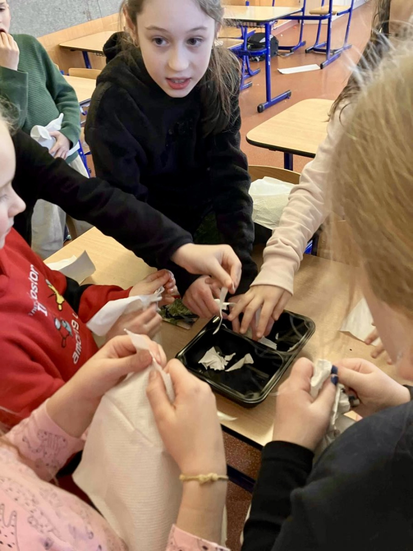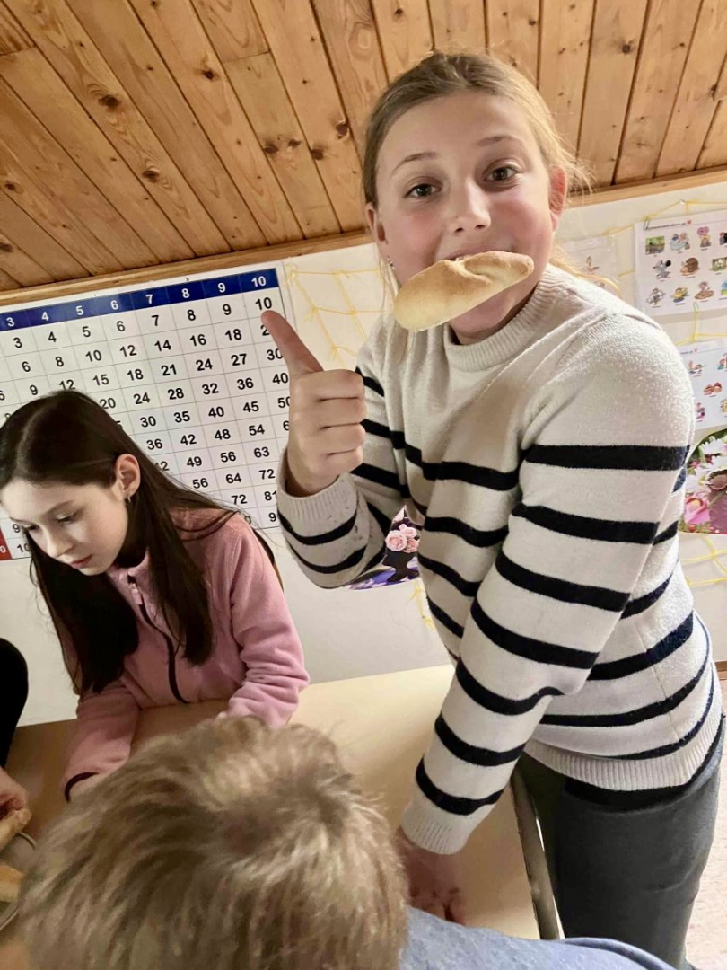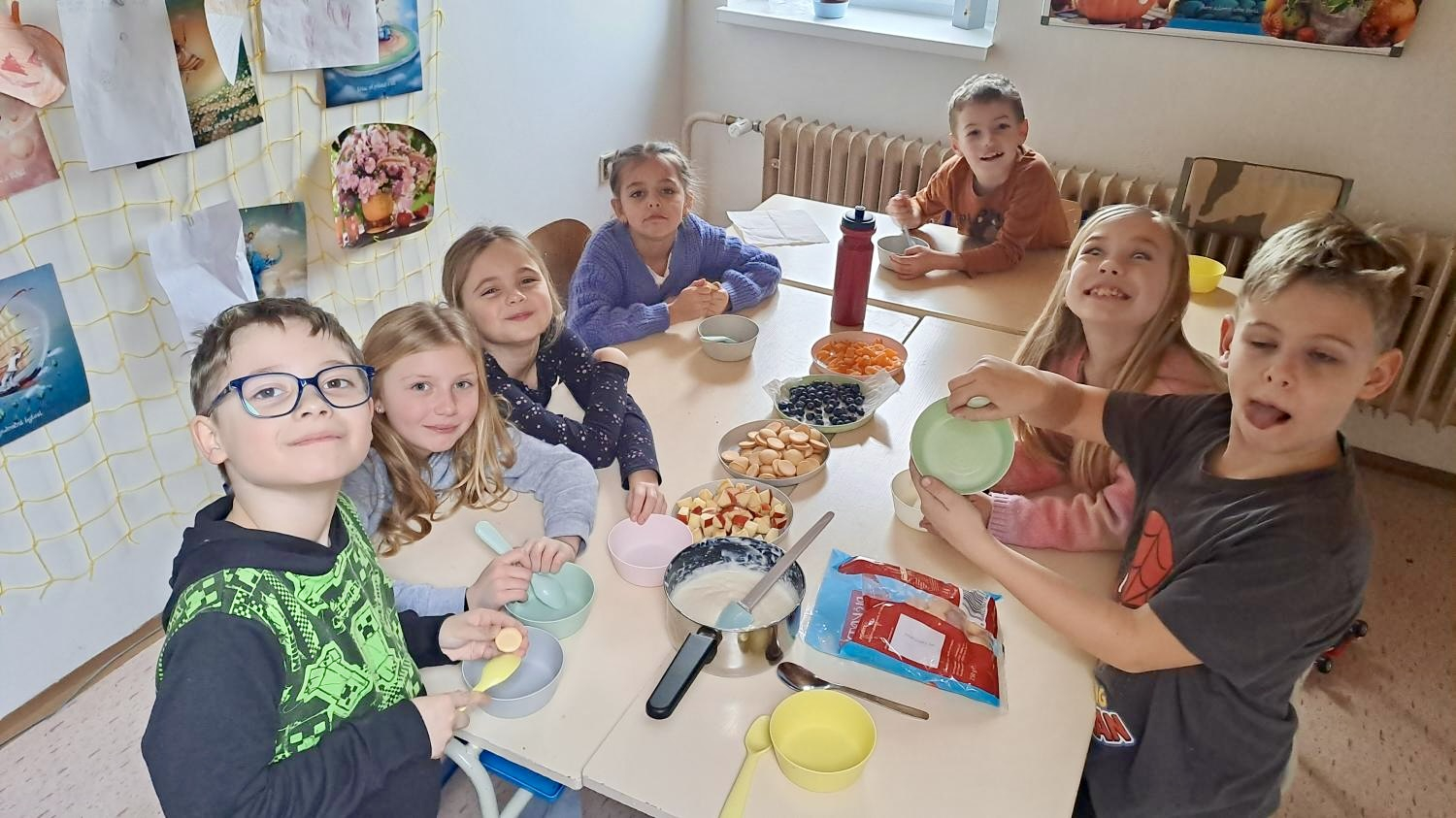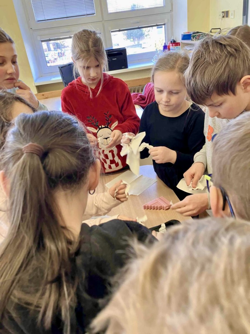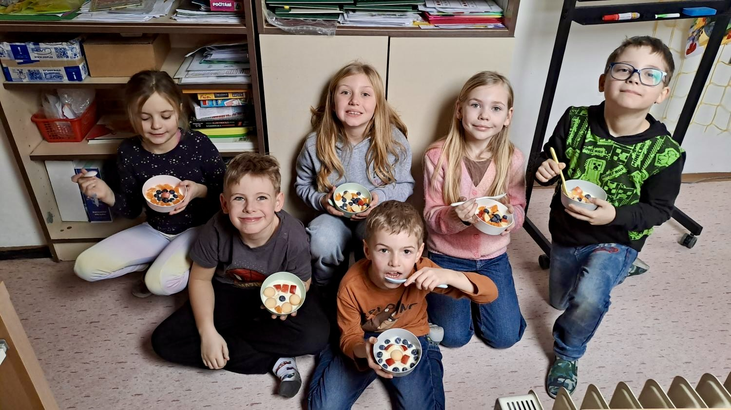 Prostor dostala i výtvarná činnost, při které vznikaly práce na téma Zimní krajina. Závěr měsíce patřil praktickým dovednostem v kuchyňce – žáci si ztloukli domácí máslo ze smetany, upekli čerstvé rohlíky a společně si je vychutnali ještě teplé s máslem, solí a řeřichou, kterou si předem sami vypěstovali.