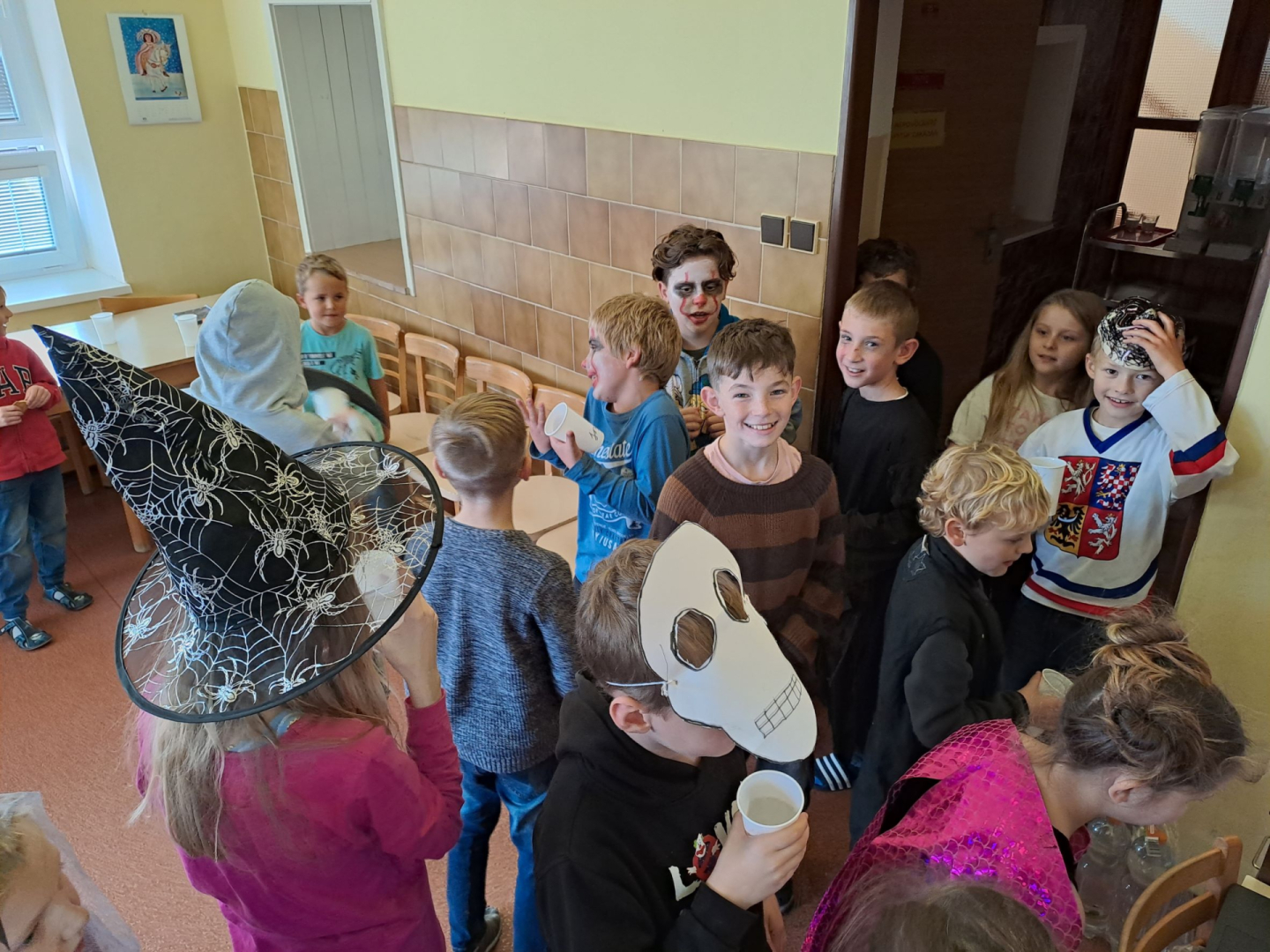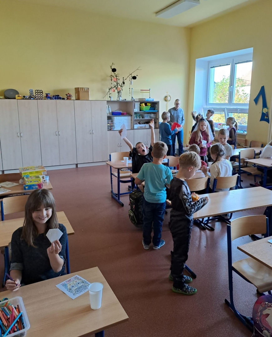 První týden v listopadu jsme se v družině zaměřili na téma Památka zesnulých – lidově Dušičky (jak u nás, tak i ve světě). Povídali jsme si o našich tradicích a vysvětlili jsme si pojem Památka všech věrných zemřelých. Následně jsme zvyky porovnávali s ostatními státy, například s Mexikem, Čínou, Amerikou atd. Tvořili jsme lucerničky a vyráběli jsme halloweenské dekorace. Děti plnily úkoly strašidelné stezky na školním dvoře a na závěr týdne jsme uskutečnili halloweenskou párty, kdy naši školu navštívilo plno strašidelných bytostí. Děti v kostýmech působily kouzelně.
