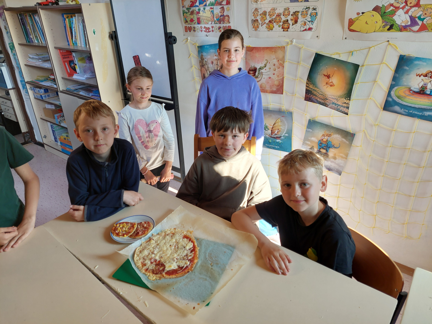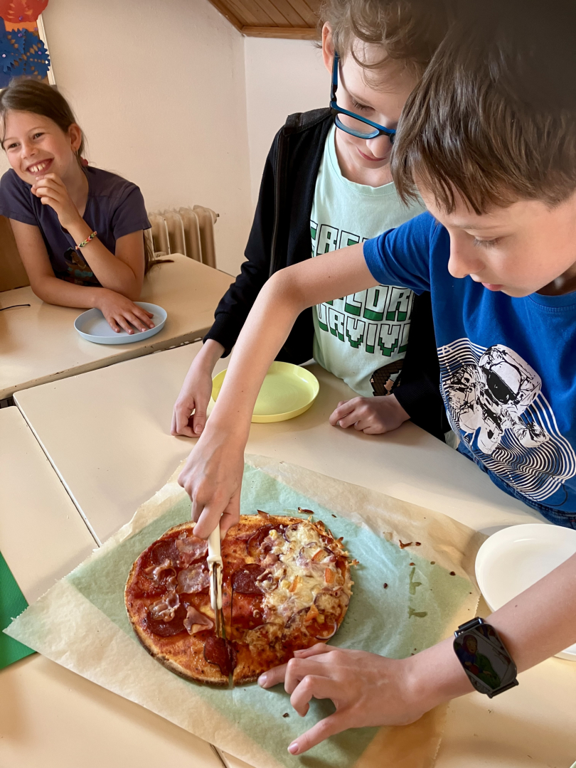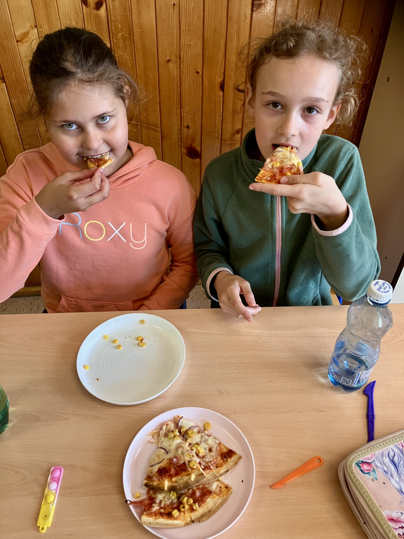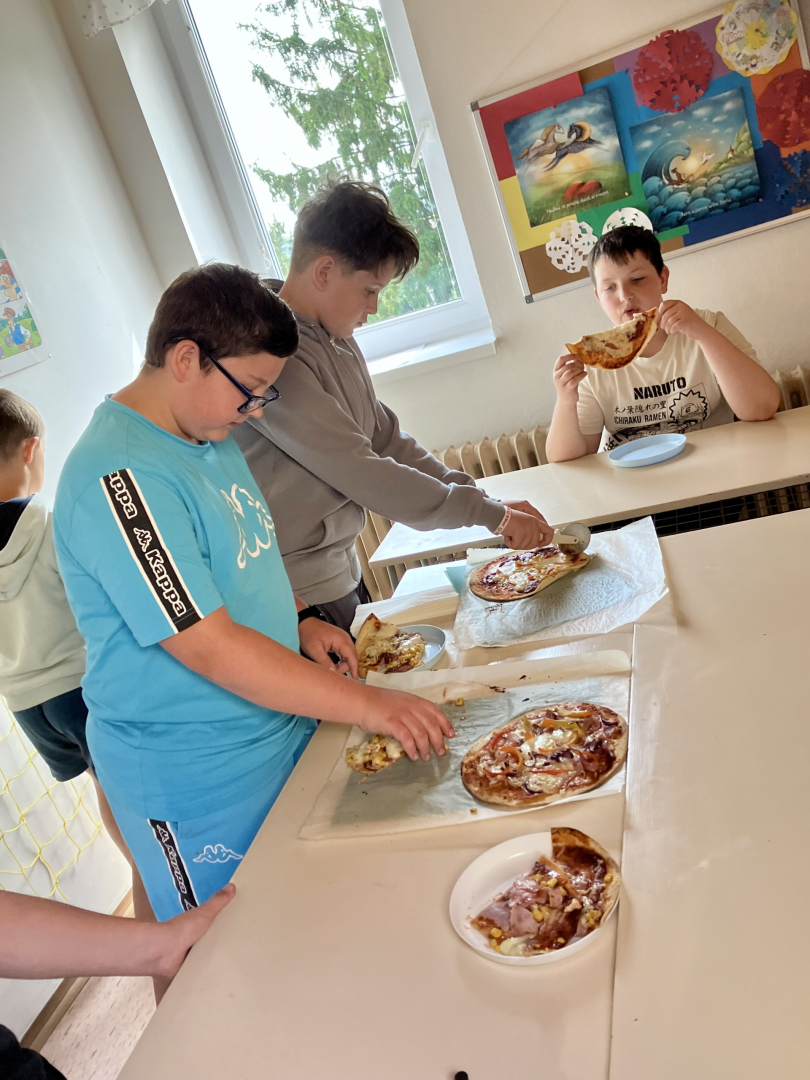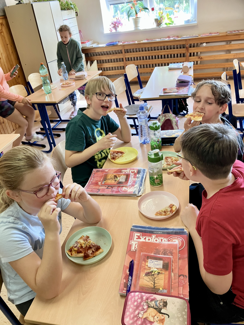 Žáky práce moc bavila, pizza všem chutnala na jedničku a celá aktivita byla skvělou (a voňavou) tečkou za lekcemi před blížícími se prázdninami.