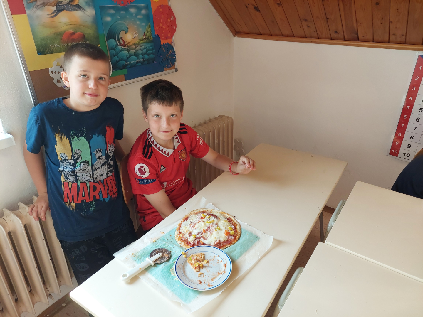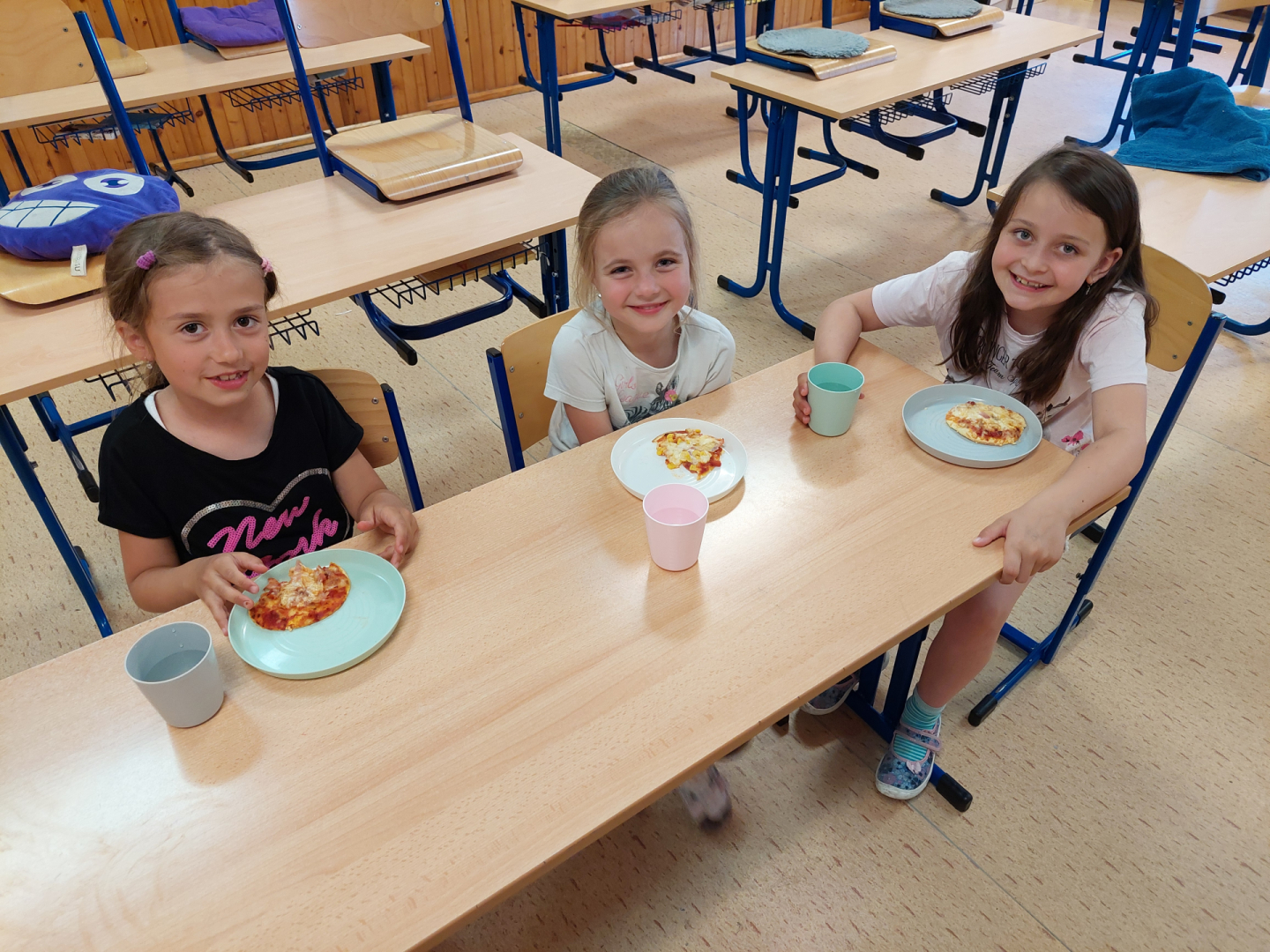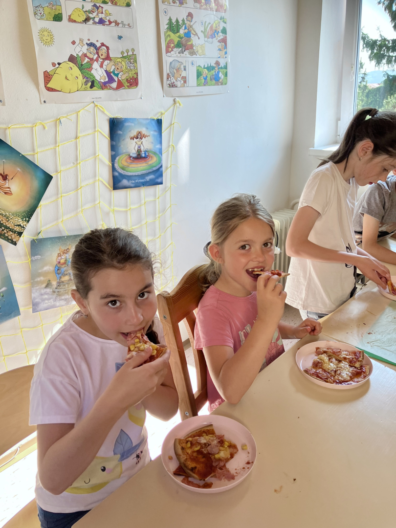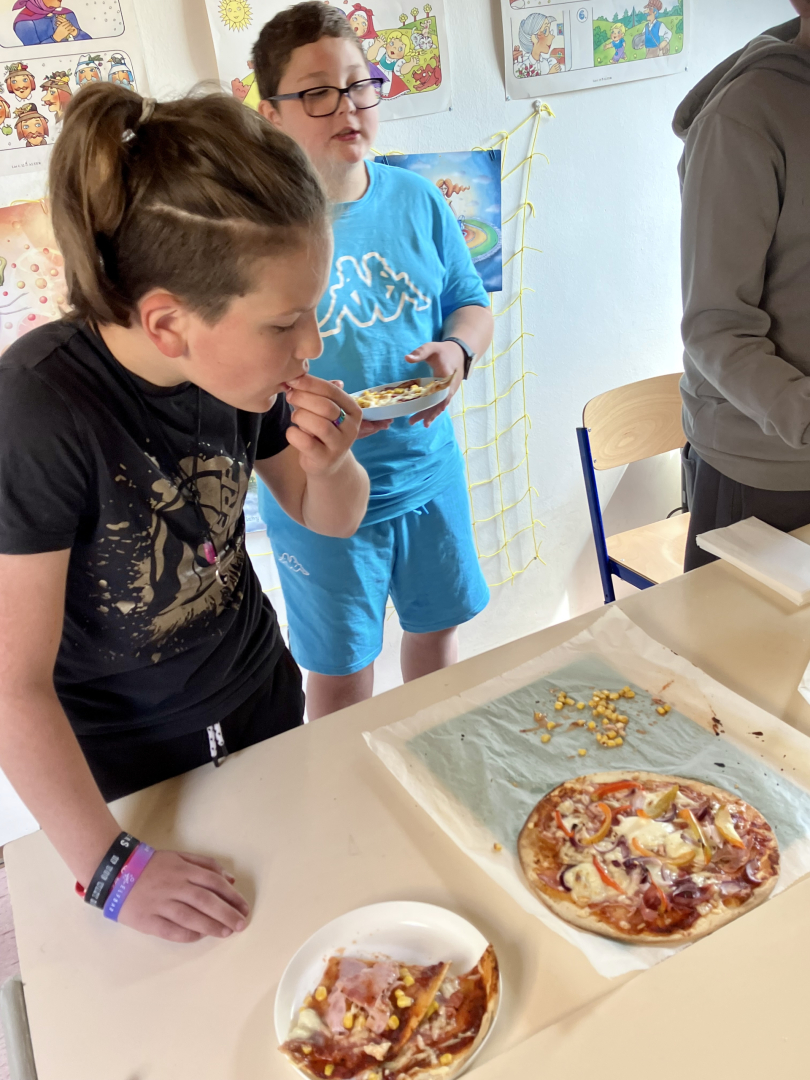 Žáky práce moc bavila, pizza všem chutnala na jedničku a celá aktivita byla skvělou (a voňavou) tečkou za lekcemi před blížícími se prázdninami.