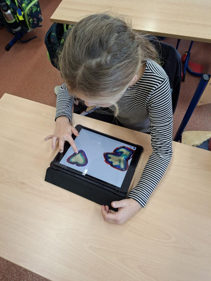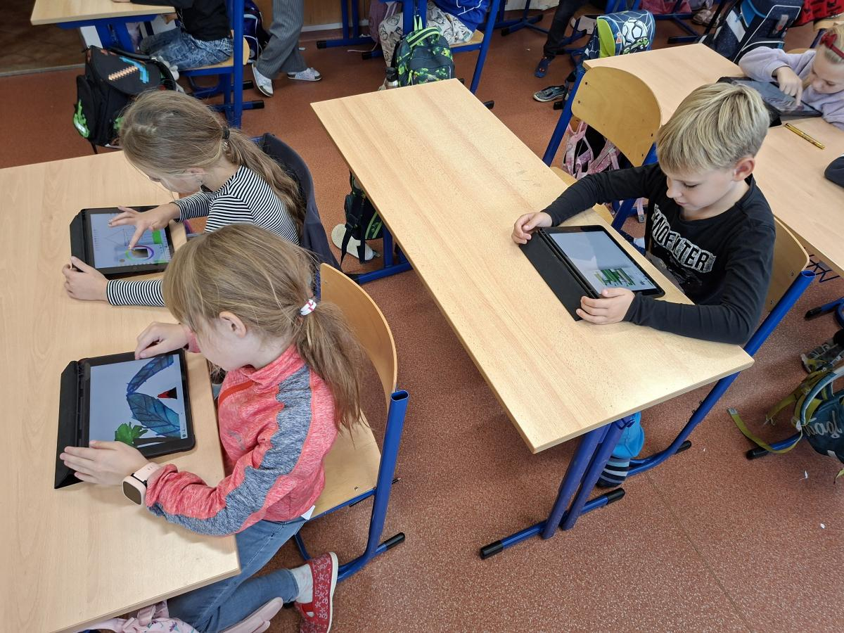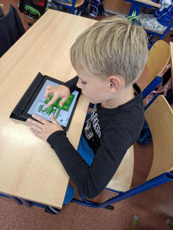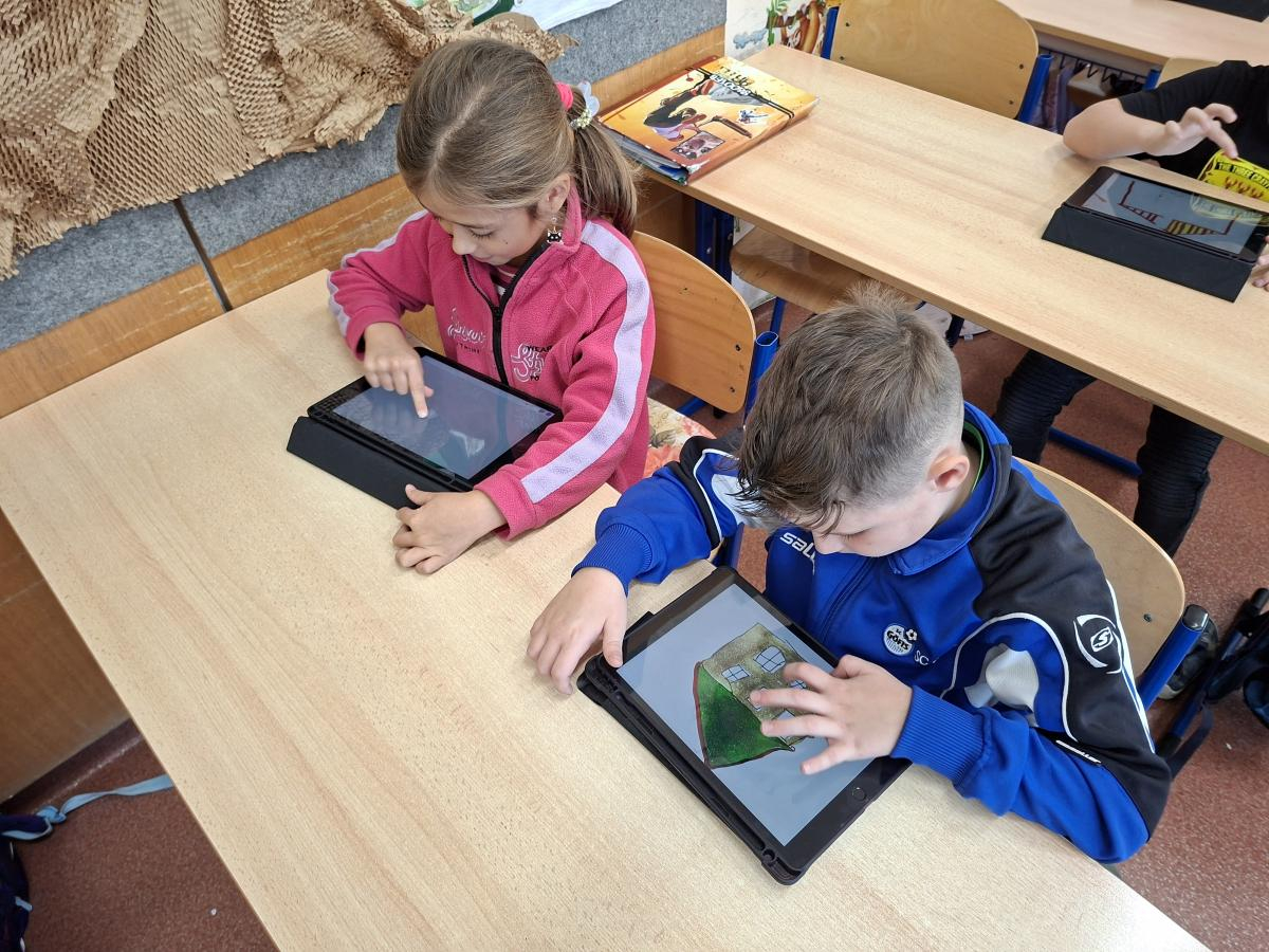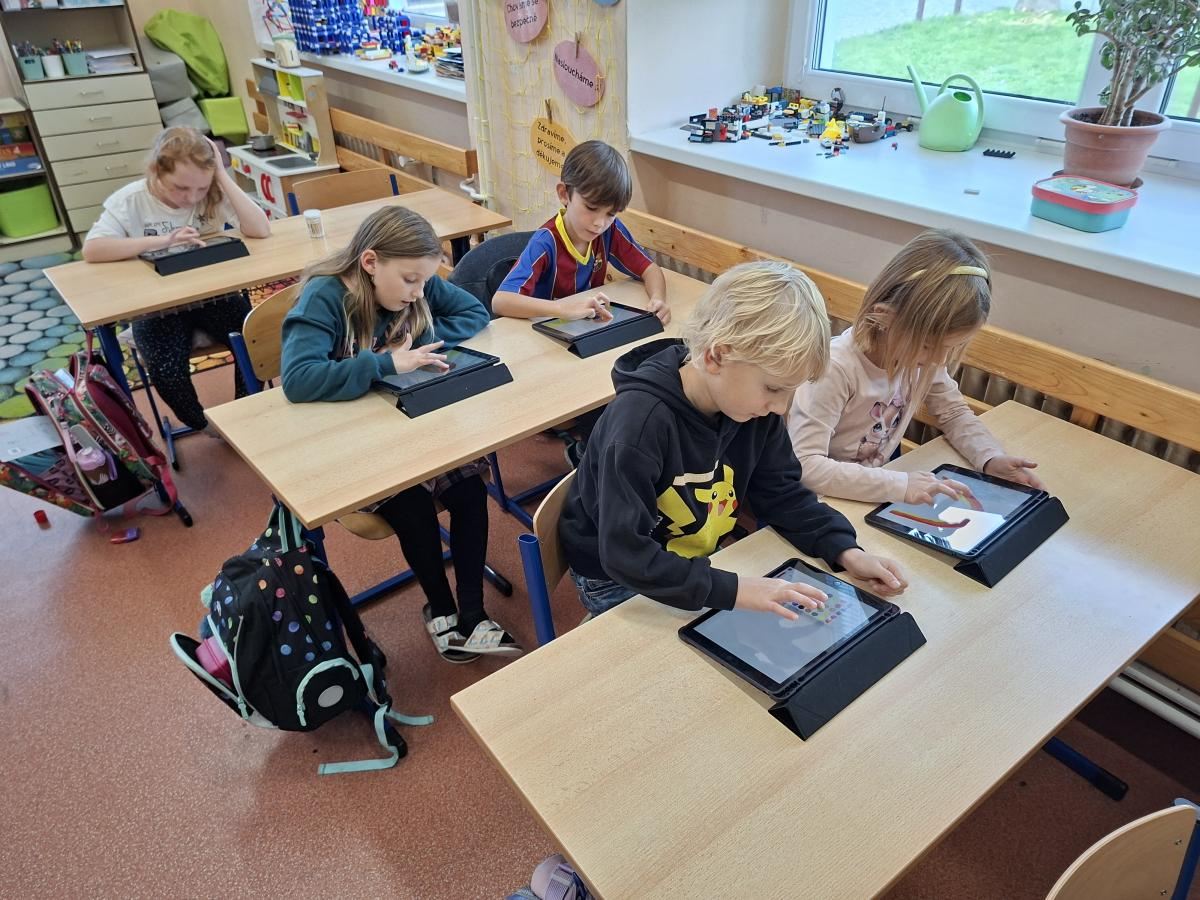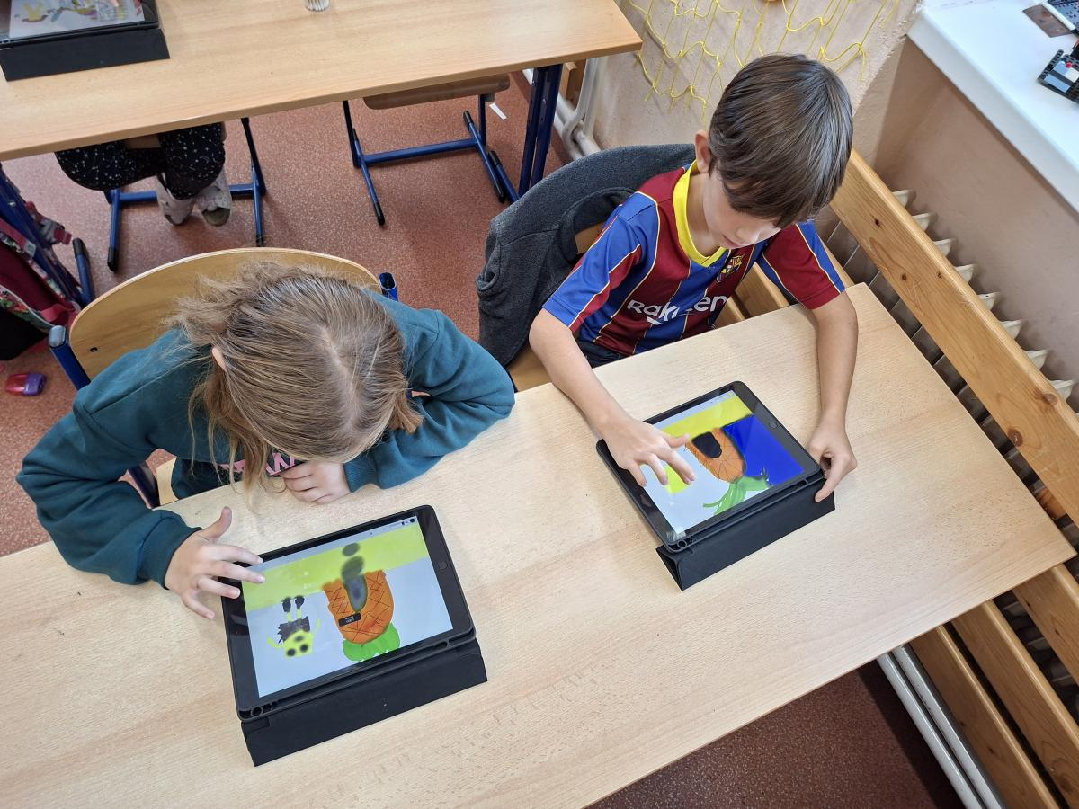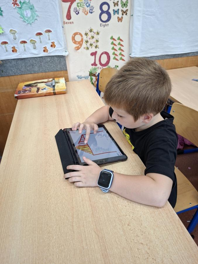 Také naši druháci se dočkali interaktivní výuky a práce s iPady. Po krátké instruktáži, jak s iPadem pracovat, ověřit nastavení a otevřít aplikaci, mohli začít pracovat. Zadané obrázky se jim dařilo nakreslit a zvolit i další grafické obrazce, které vyplnili barvou. Pro všechny ročníky bude i nadále interaktivní výuka průběžně zařazována.