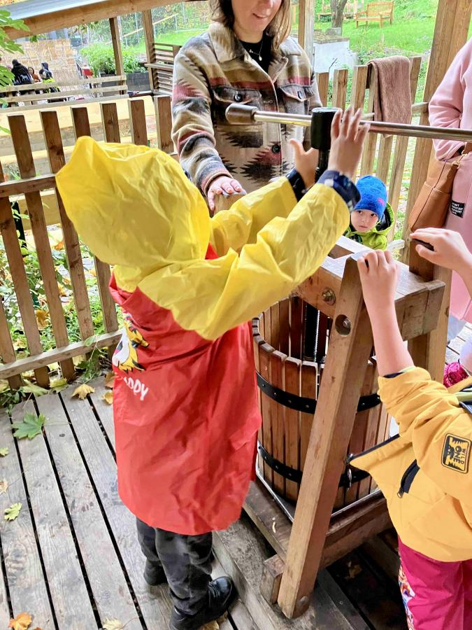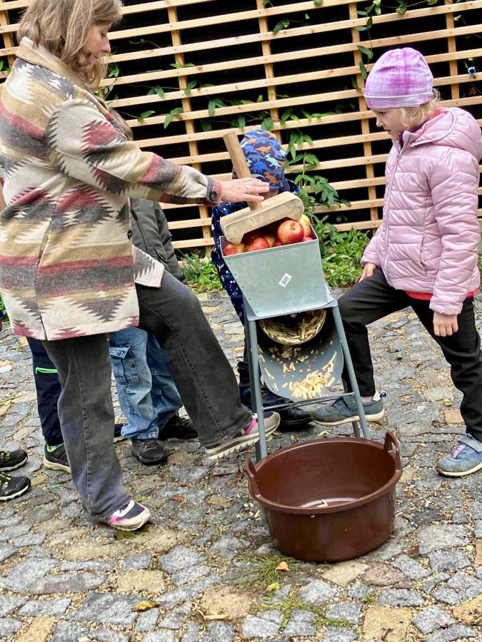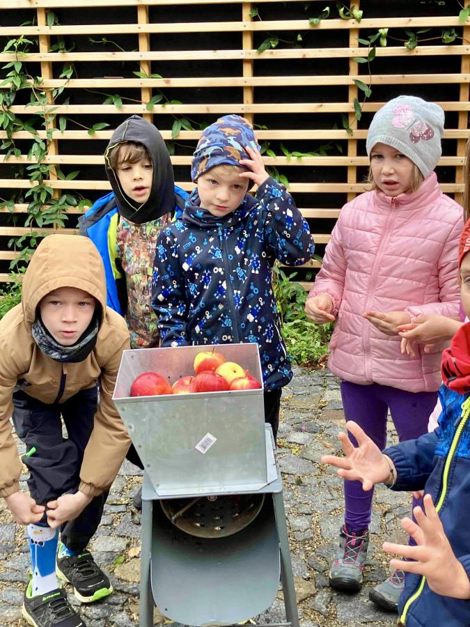 Žáci prvních ročníků navštívili ve středu 15. října Otevřenou zahradu v Brně. Program s názvem Podzim v zahradě byl podzimní se vším všudy, i s počasím. Při procházení zahrady se žáci seznámili s bylinkami, které jsou dobré na podzimní nachlazení a navštívili místní ovečky, králíky a slepice. Také zjistili a na vlastní kůži si zkusili, co vše se musí udělat, aby mohli ochutnat jablečný mošt a kváskové pečivo. Děkujeme lektorkám za získání nových zkušeností a jejich milý přístup.