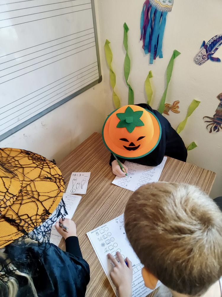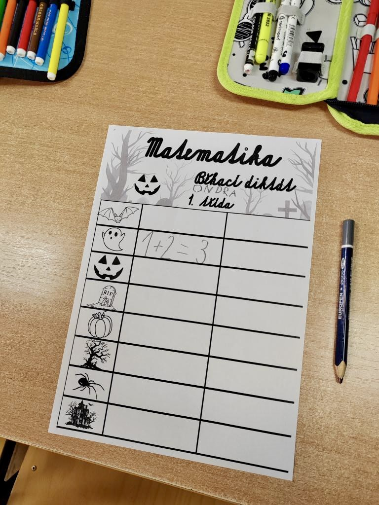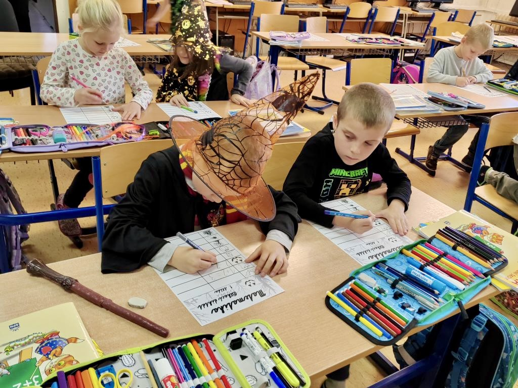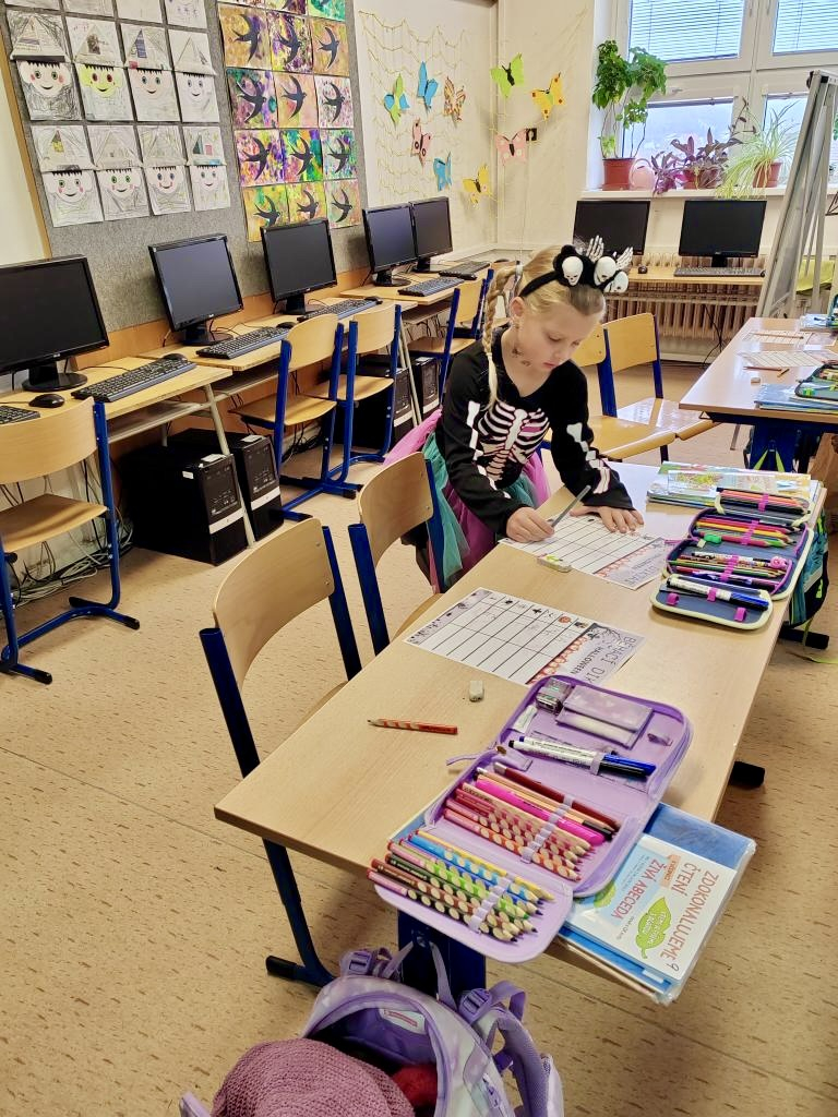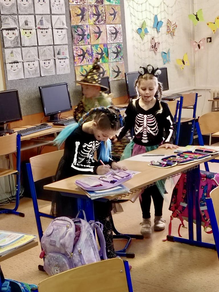 V 1. ročníku byla například práce propojena s některými předměty jako český jazyk a matematika a mezi úkoly patřil jak běhací diktát, tak také doplňování šifer a hádanek. Ve 3. A zase žáci hráli halloweenskou násobilku a v českém jazyce pracovali s textem na téma Čarodějnice a pavouci.