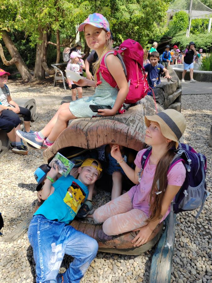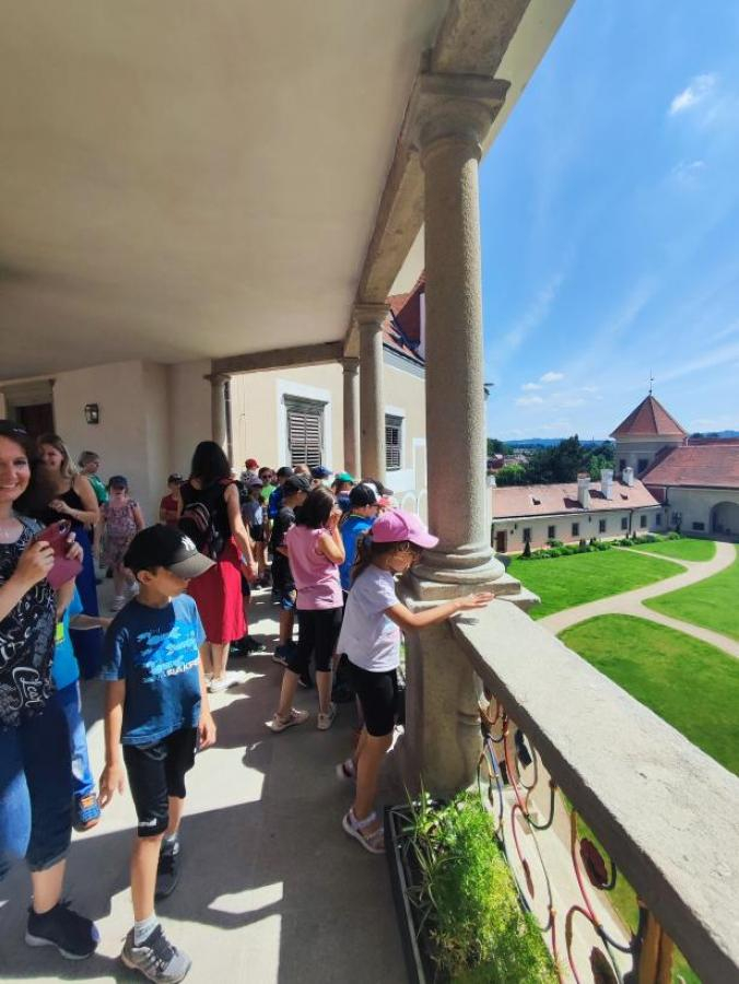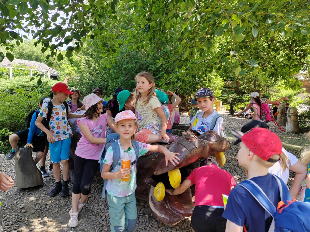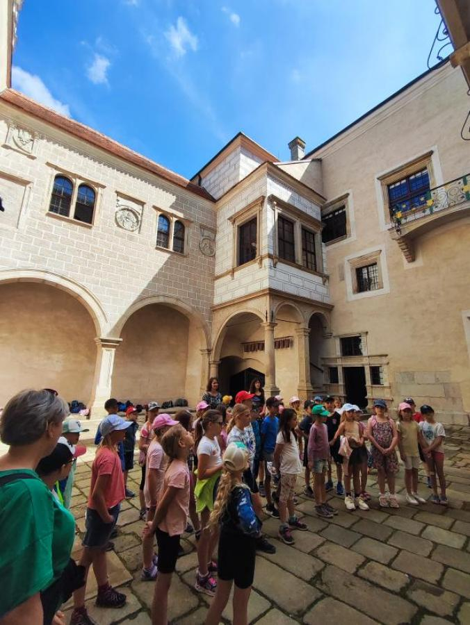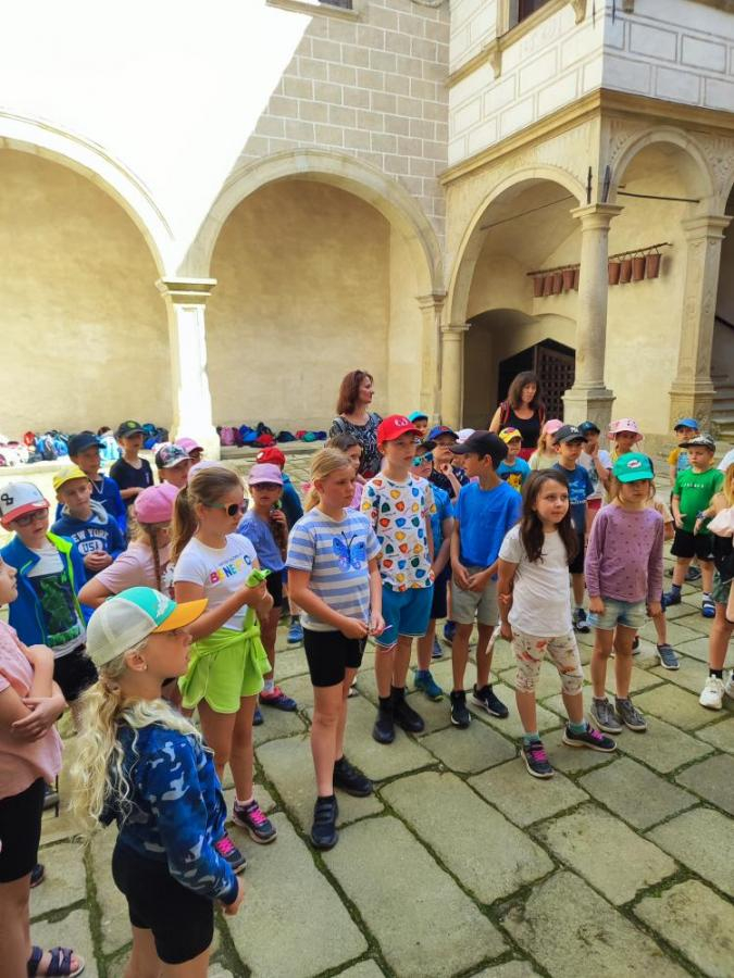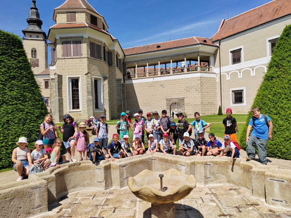 V úterý 18. června jsme se s žáky z 1.-3. ročníku vydali na celodenní školní výlet, který se opravdu vydařil. První zastávkou byl krásný renesanční zámek v Telči, kde nás čekala zajímavá prohlídka. Nejvíce žáky zaujala tajemná legenda o Bílé paní, s napětím poslouchali a měli spoustu otázek. Po prohlídce zámku jsme se přesunuli do zoo v Jihlavě. Zde bylo ke zhlédnutí mnoho zvířat – největší úspěch měly surikaty, dále tygr, opice, ale také krokodýl nebo různé druhy papoušků. Kromě zvířat žáky potěšila i zastávka na zmrzlinu, která v teplém počasí přišla vhod. Celý den jsme si užili ve skvělé náladě, všichni byli nadšeni a domů si odvezli spoustu zážitků. Děkujeme všem za krásný den!