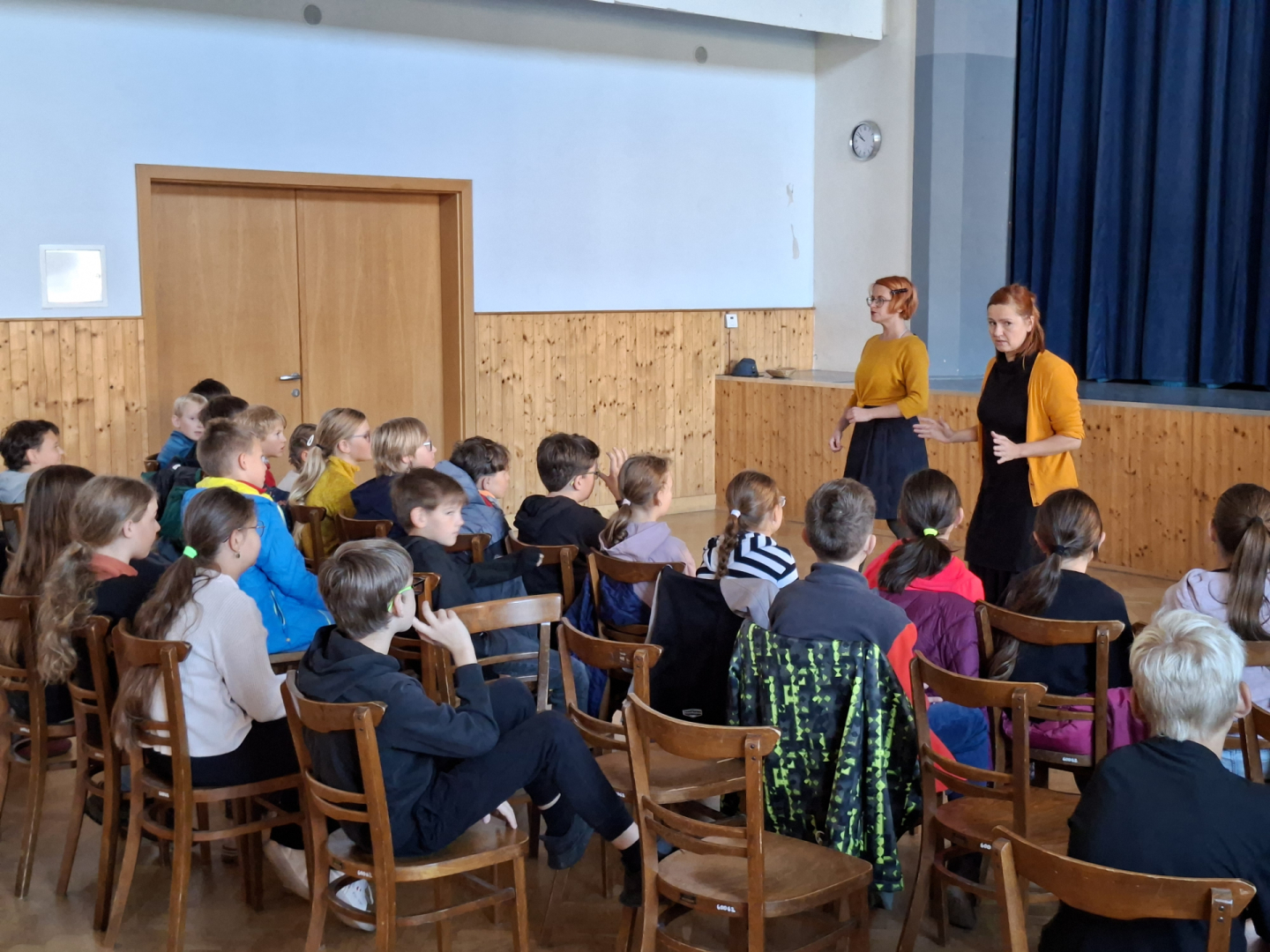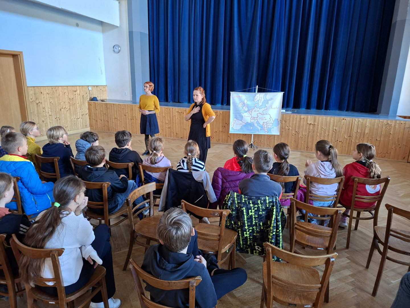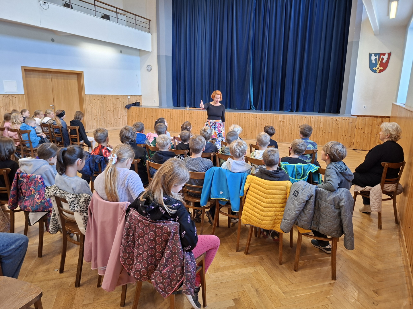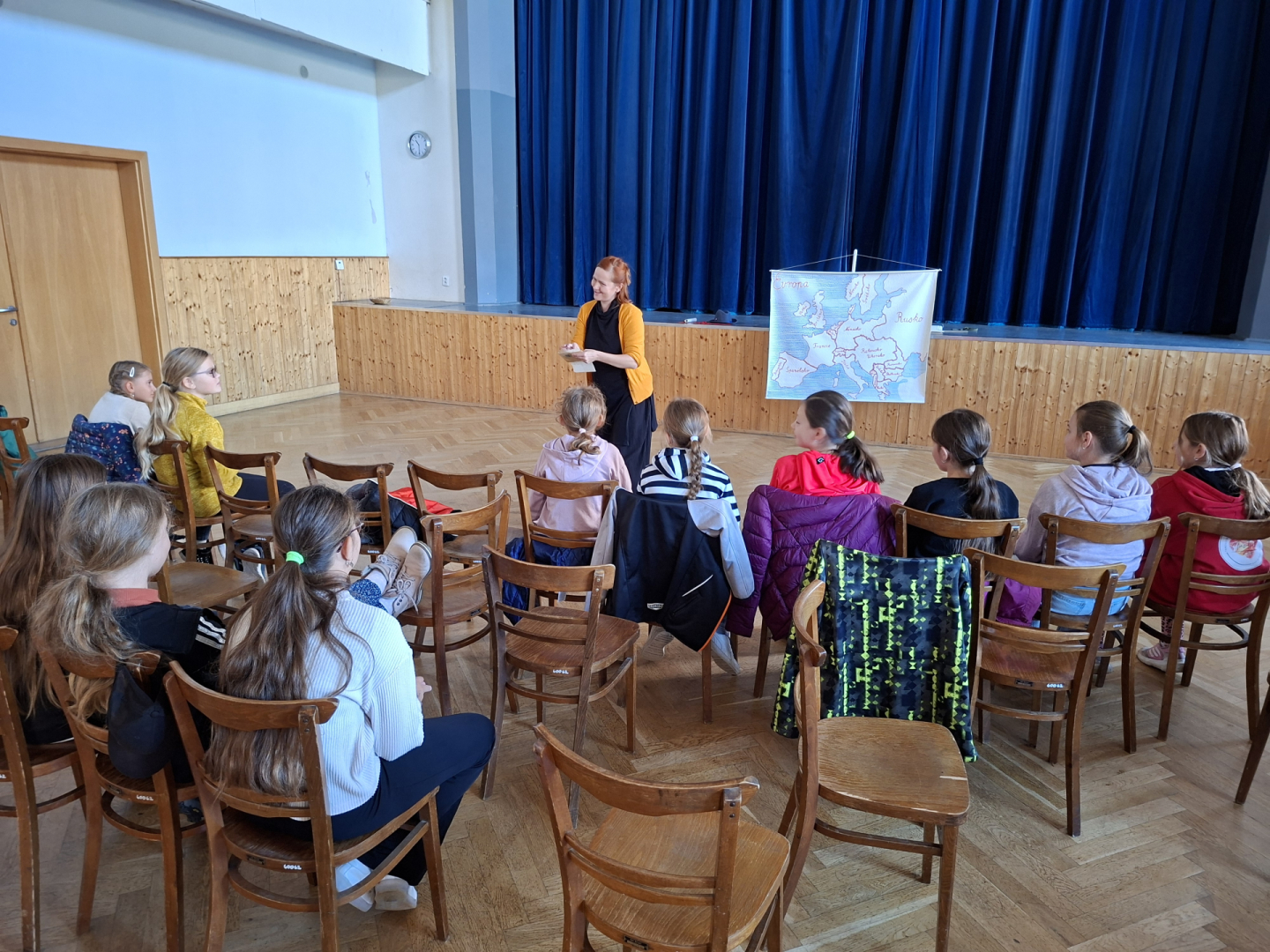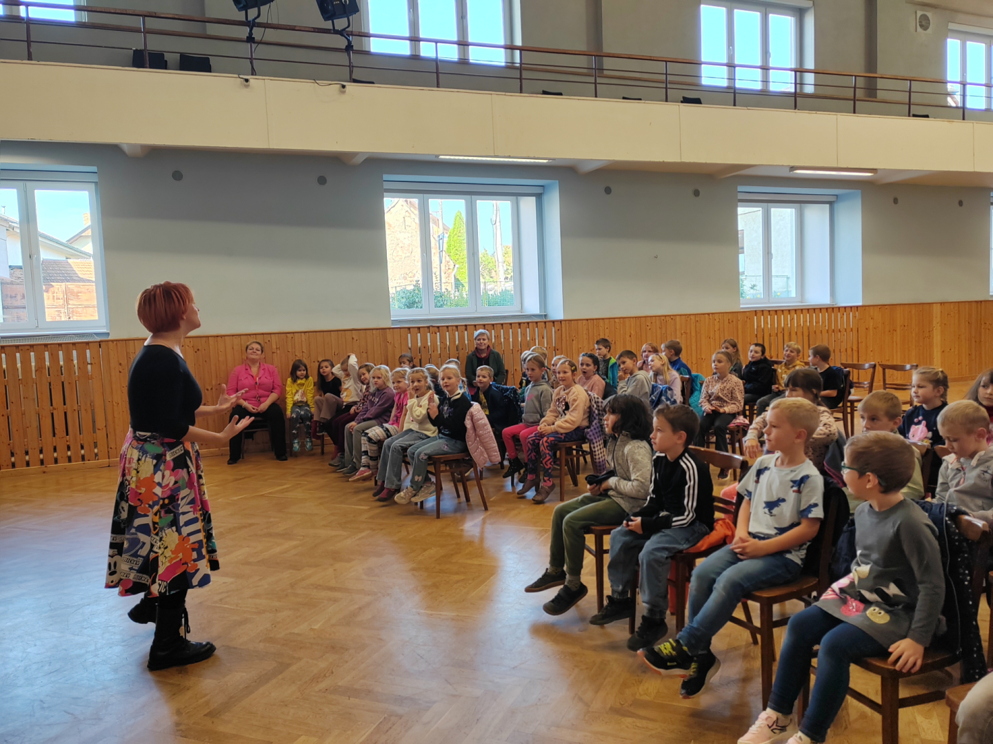 Ve spolupráci s říčanskou knihovnou se uskutečnilo vyprávění příběhů tzv. Storytelling, který působivým hereckým podáním ztvárnily dvě lektorky. Pro 1. a 2. ročník připravily představení s názvem Pohádky ze všech koutů světa. Vyprávěný pohádkový příběh žáky přenesl do Norska, kde si představovali, jak asi vznikl život. Poté následoval druhý příběh, kde si sami odhlasovali, že chtějí zažít, jak postupně, tentokrát v Africe, vznikl slon. Pohybem a zvukem si tak mohli různé situace vyzkoušet. Pro 3. a 4. ročník bylo připraveno představení Staré pověsti české, které odkazovalo na zpracování dávných českých dějin. Byly zde propojeny historické prameny a lidová slovesnost do barvitého vyprávění. 5. ročník byl v příběhu, Ať žije republika, seznámen s historickými událostmi vzniku Československé republiky, dále osobností Tomáše Garrigua Masaryka a jeho snahy o budování a udržení našeho státu. Žáci si tak měli možnost uvědomit, jak složitá byla politická situace v Evropě a v Rakousko-uherské monarchii.