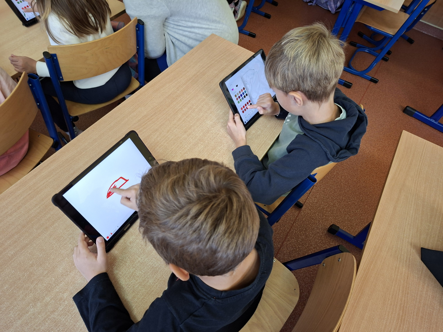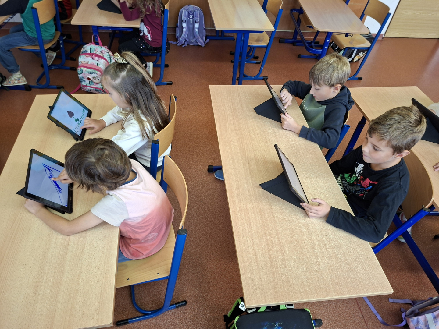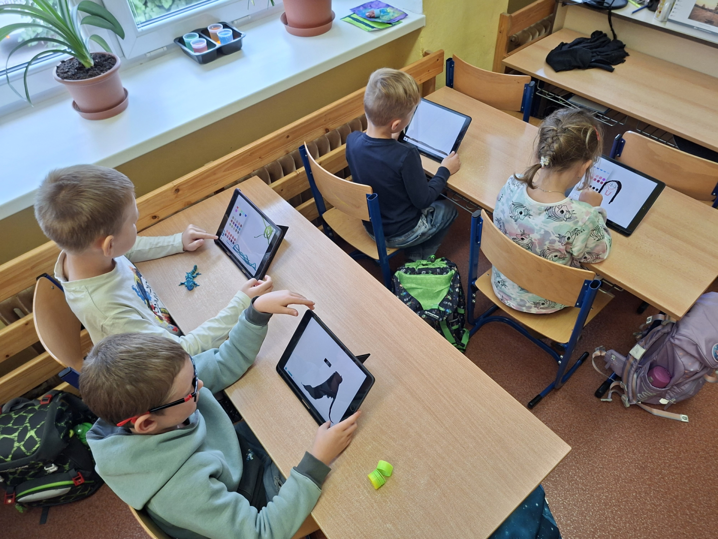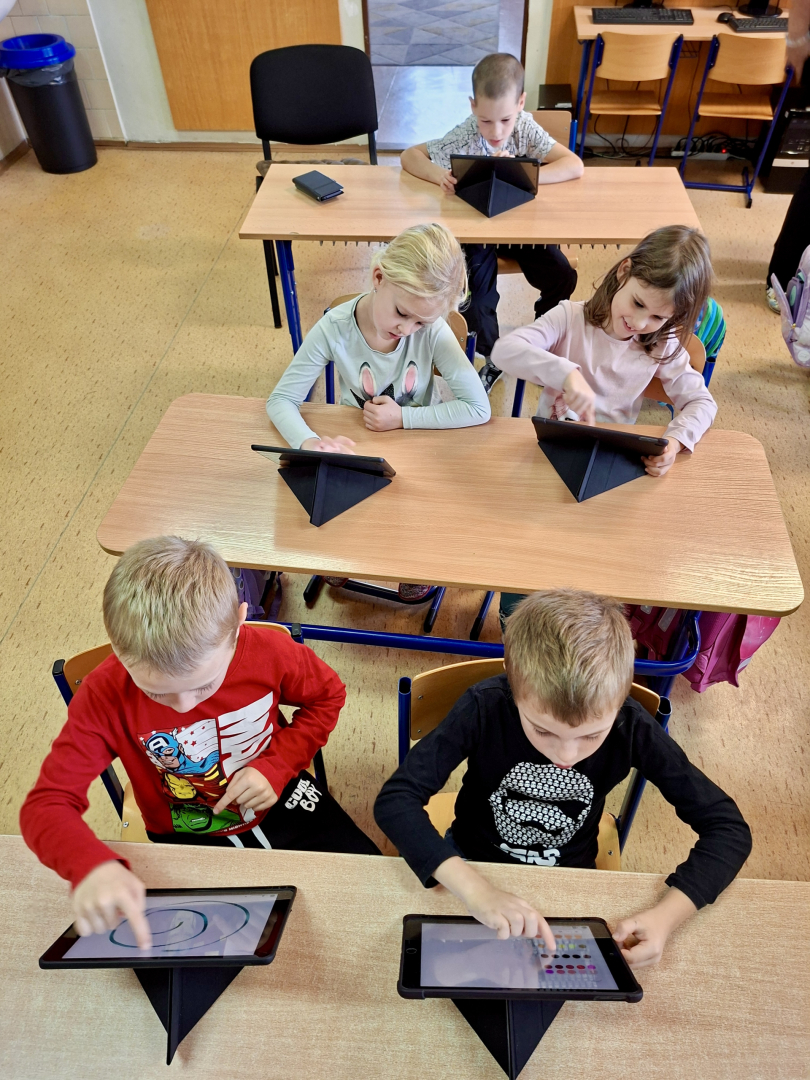 Žáci tříd 1. A a 1. B se učí pracovat s digitálními technologiemi, s iPady zkoušeli malovat a tvořit své obrázky na zadaná témata. Zpestření vyučování se žákům líbilo a jsem rád, že pro ně dokážeme připravit i tento způsob moderní interaktivní výuky.