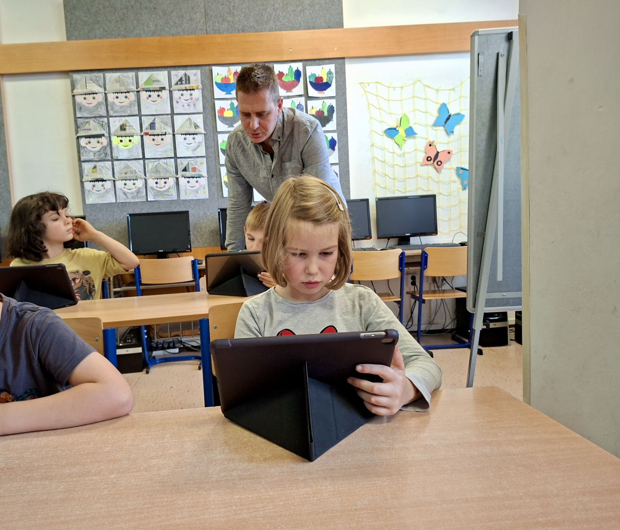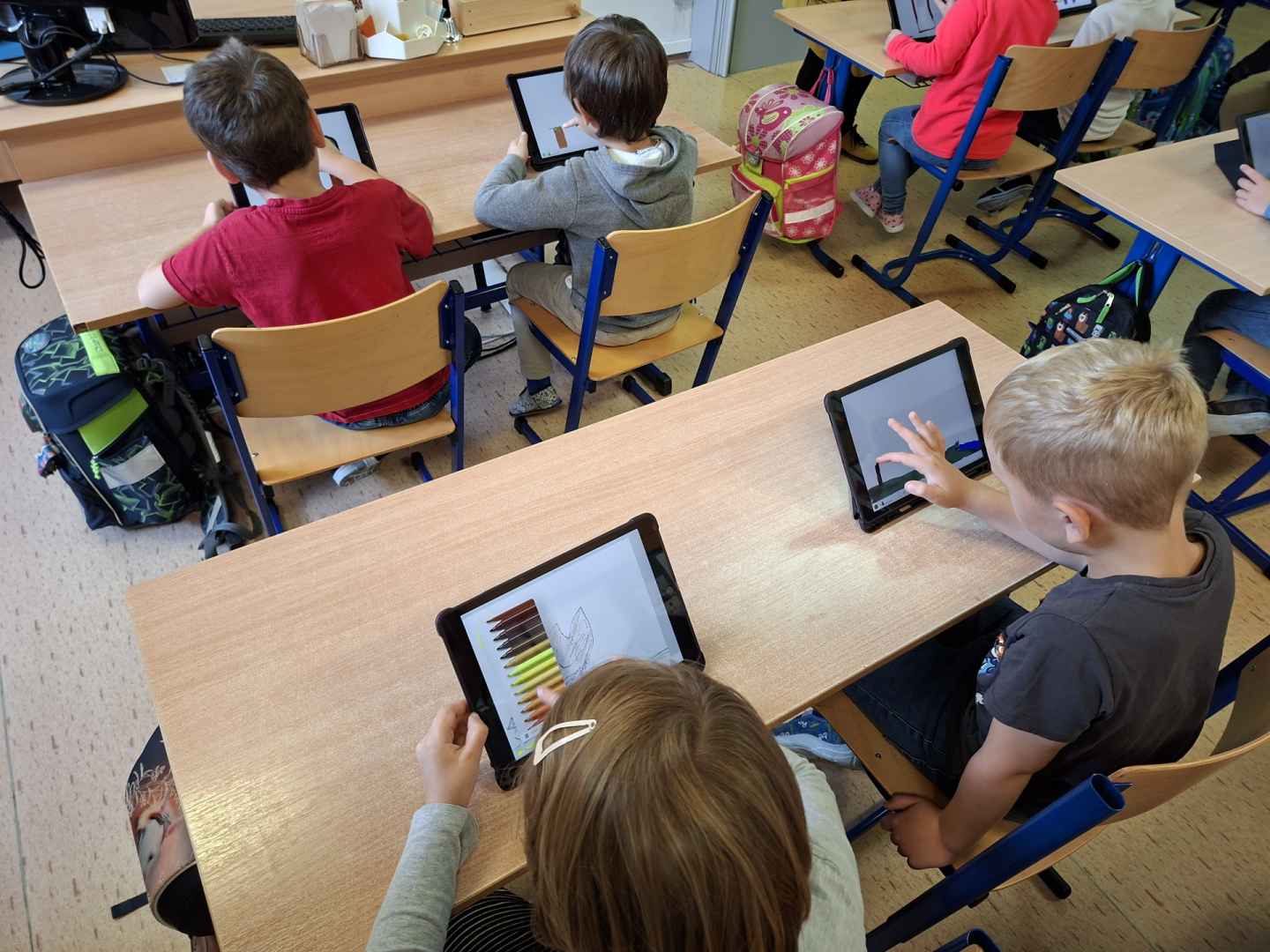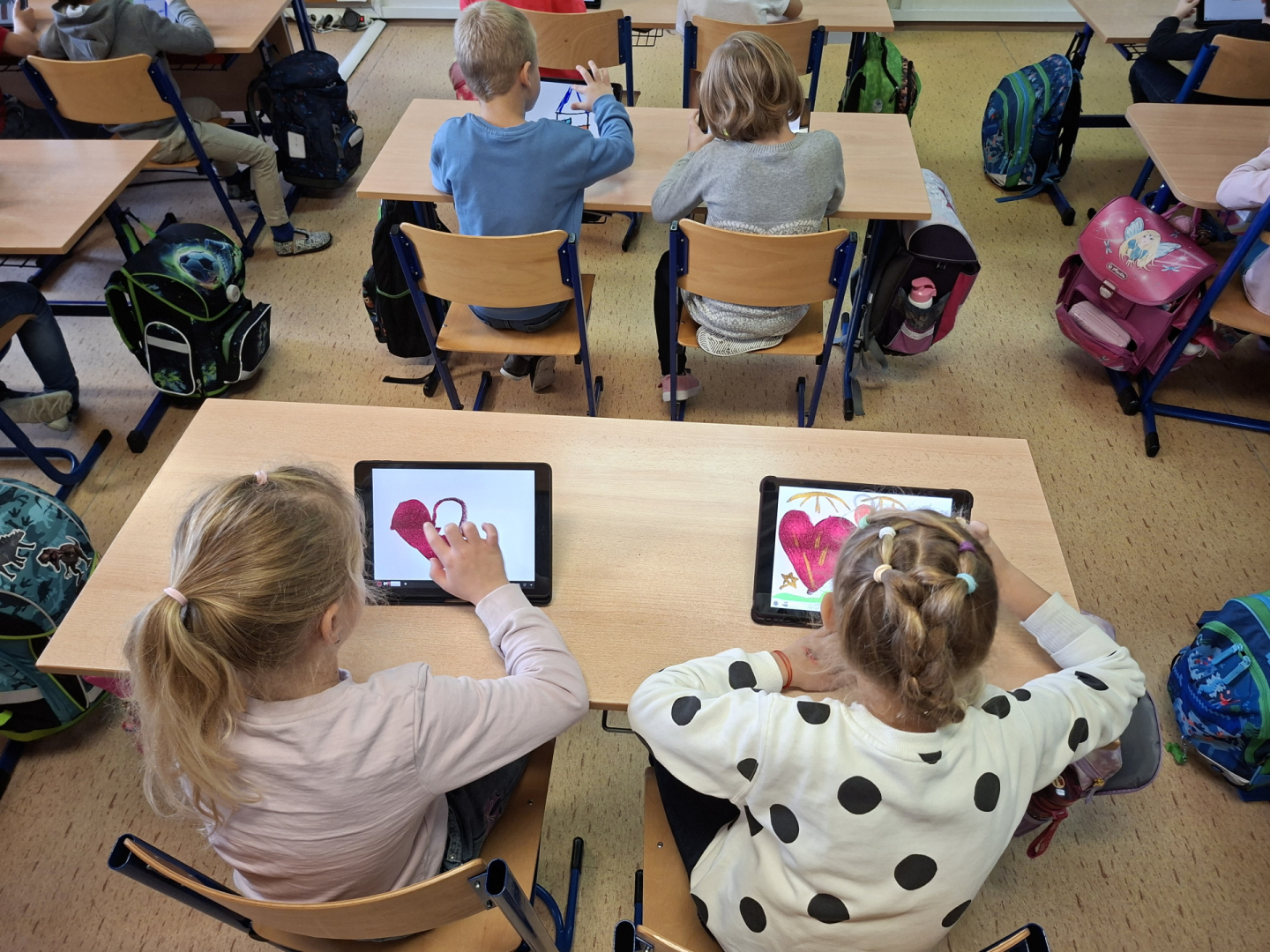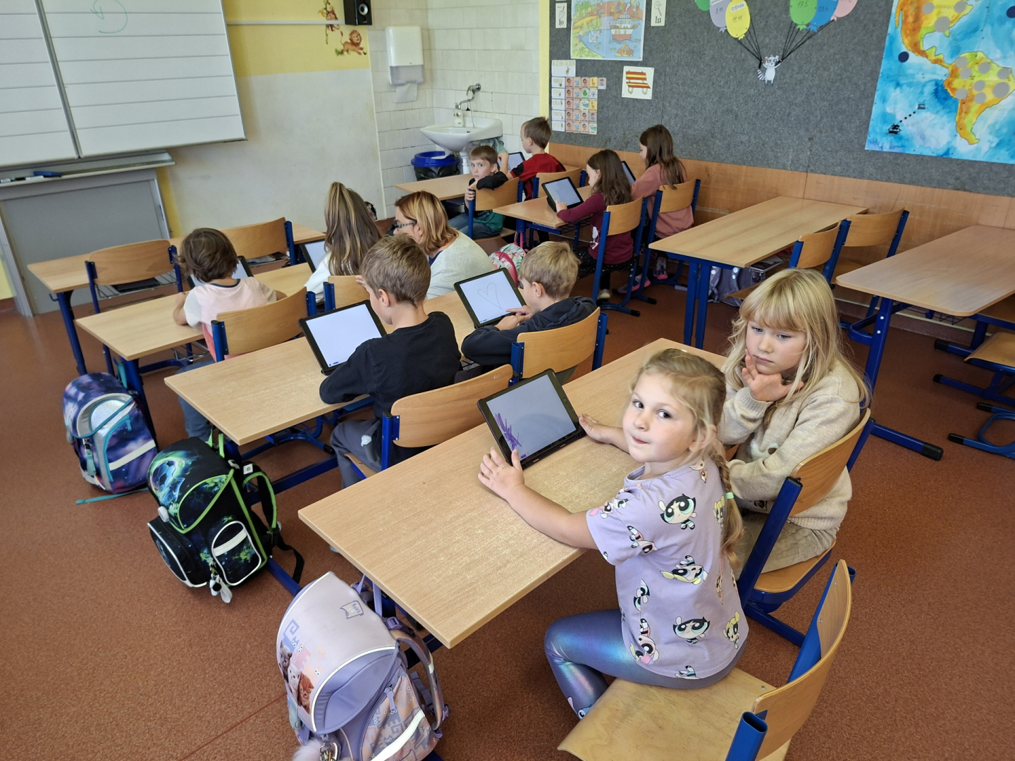 Žáci tříd 1. A a 1. B se učí pracovat s digitálními technologiemi, s iPady zkoušeli malovat a tvořit své obrázky na zadaná témata. Zpestření vyučování se žákům líbilo a jsem rád, že pro ně dokážeme připravit i tento způsob moderní interaktivní výuky.
