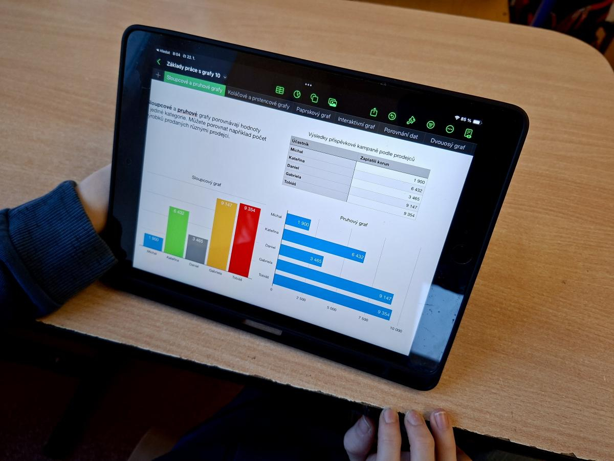 Žáci 4. a 5. ročníku se v hodinách informatiky seznámili s další aplikací s názvem Numbers. Pomocí tabulek, zapsaných dat a grafů srovnávali údaje a tyto výpočty vyhodnocovali. Jednalo se zejména o přehledně vypracovanou informaci statistiky zadaných témat.